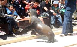 駐車場で駐車料500円と入園料1600円を払い渡し船に乗る。なるほど小さな島だ。久しぶりに“美しい富士山”を観た。それにしてもGWはまだ終わっていなかった。アシカショー(写真左)もイルカショー(写真右)も満員。翁も童心に戻って2つのショーを楽しんだ。
