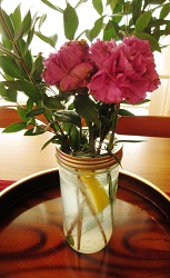 花屋さんで花を買うと花が長持ちする小袋を付けてくれる事がある。中身の成分はおそらくレモンのレシピに似たようなものが入っているのだろうと思う。