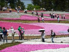 こじんまりした“芝桜園”は、これまでに(あちこちで)観たことはあるが、これほど大規模な眺めは初めてだ。まさに『広大な芝桜の絨毯』である。博識、と言えば、奥さんもなかなかの“芝桜通”――「芝桜は北アメリカ原産の多年草で、花の形が桜に似ていて、芝のように地面を這って広がるので“芝桜”と呼