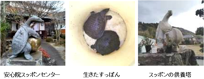 『安心院』は「安心院ワイン」より古い歴史を持つ「すっぽんの町」としても有名だ。翁が訪れたのは創業1933年(昭和8年)の「安心院すっぽんセンター」。スタッフの話によると「安心院がすっぽんの町として全国的に知られるようになったのは大正期から」だそうだ。「安心院に湧き出る温泉を利用してすっぽんの養殖を行ない、年間を通して生きすっぽん、切り身パックを販売している」とのこと。養殖場から“生きたすっぽん”2匹持参、翁に見せてくれ、様々な効能を説明してくれたが翁、正直、すっぽんは苦手・・・